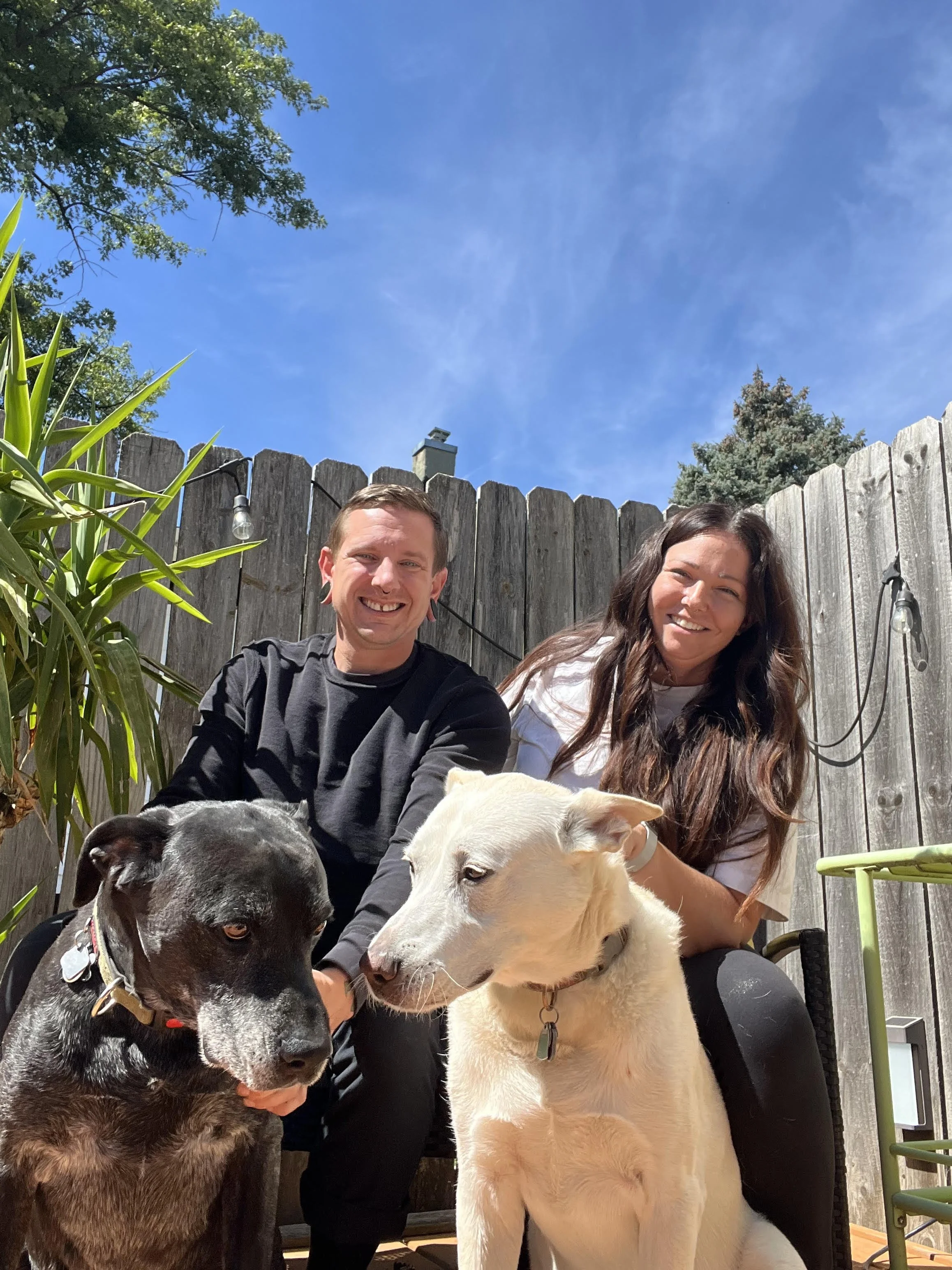 We’re Joel and Kate (along with our pups Samson and Juniper)!